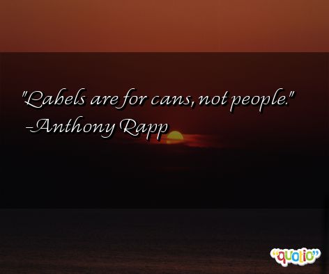 Anthony Rapp - Labels are for cans, not people. Labels are for cans, not people. Anthony Rapp People Labels Cans Quotes to Explore Those are my principles, and if you don't like them... well, I have others. Groucho Marx Ours not to reason why, ours but to do and die. Alfred Lord Tennyson It is difficult to free fools from the chains they revere. Voltaire